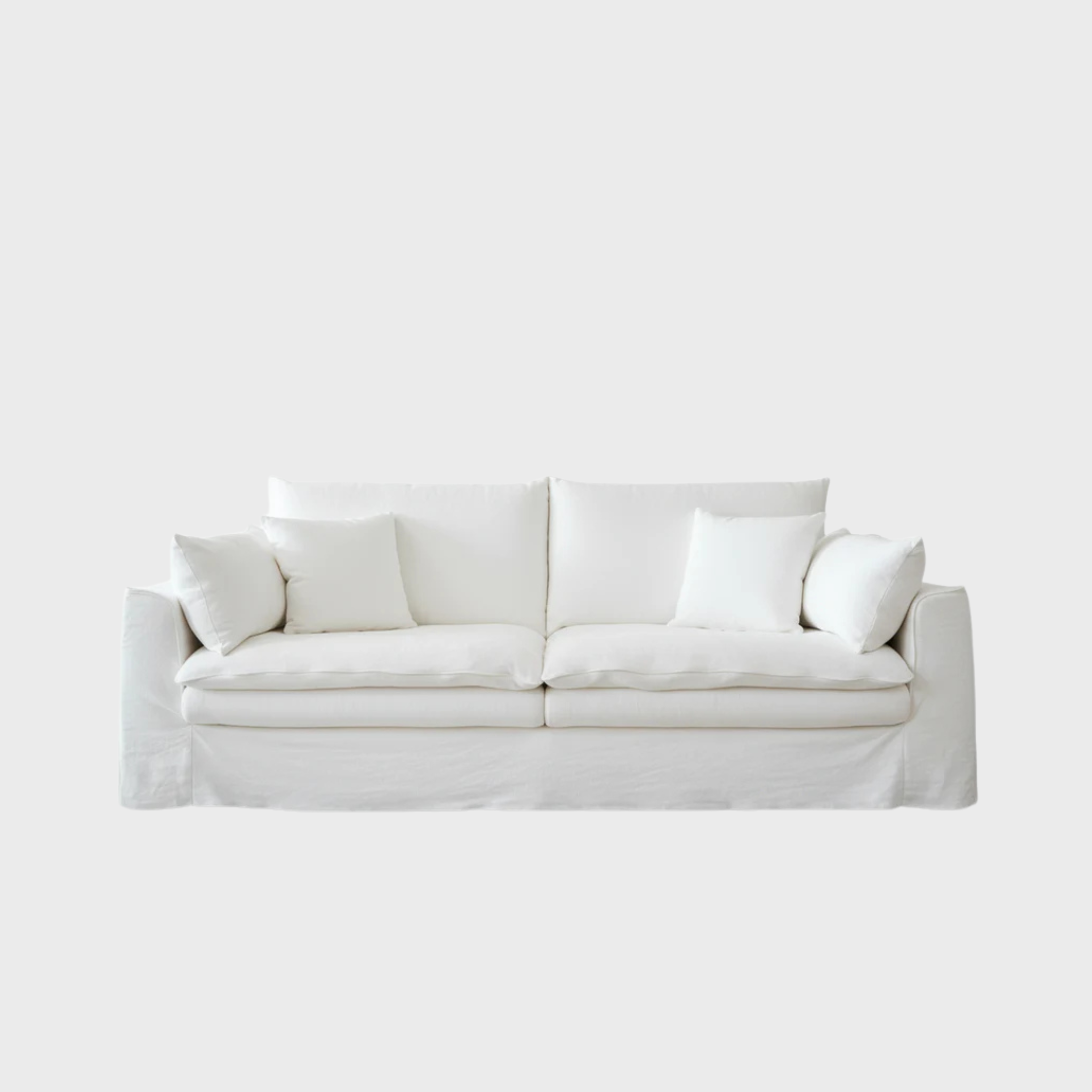 Airy, effortless, and deeply comfortable. Haven pairs generous, sink-in cushions with a tailored, full-length slipcover for a crisp, relaxed silhouette. The slim track arms and clean seams keep it modern, while the cloud-soft seat invites long, lingering lounge time. A bright, versatile white that lifts any room—from coastal calm to minimalist chic.