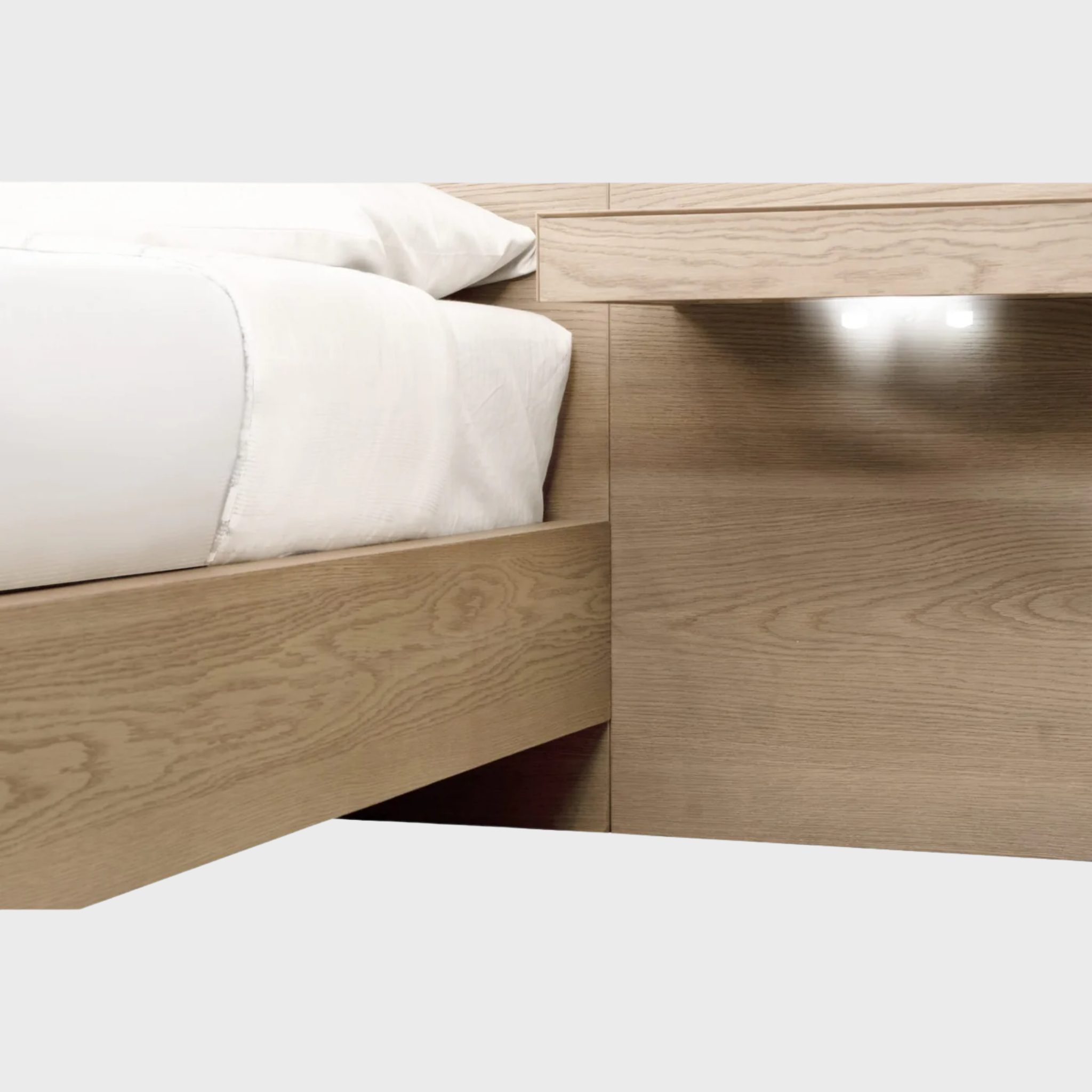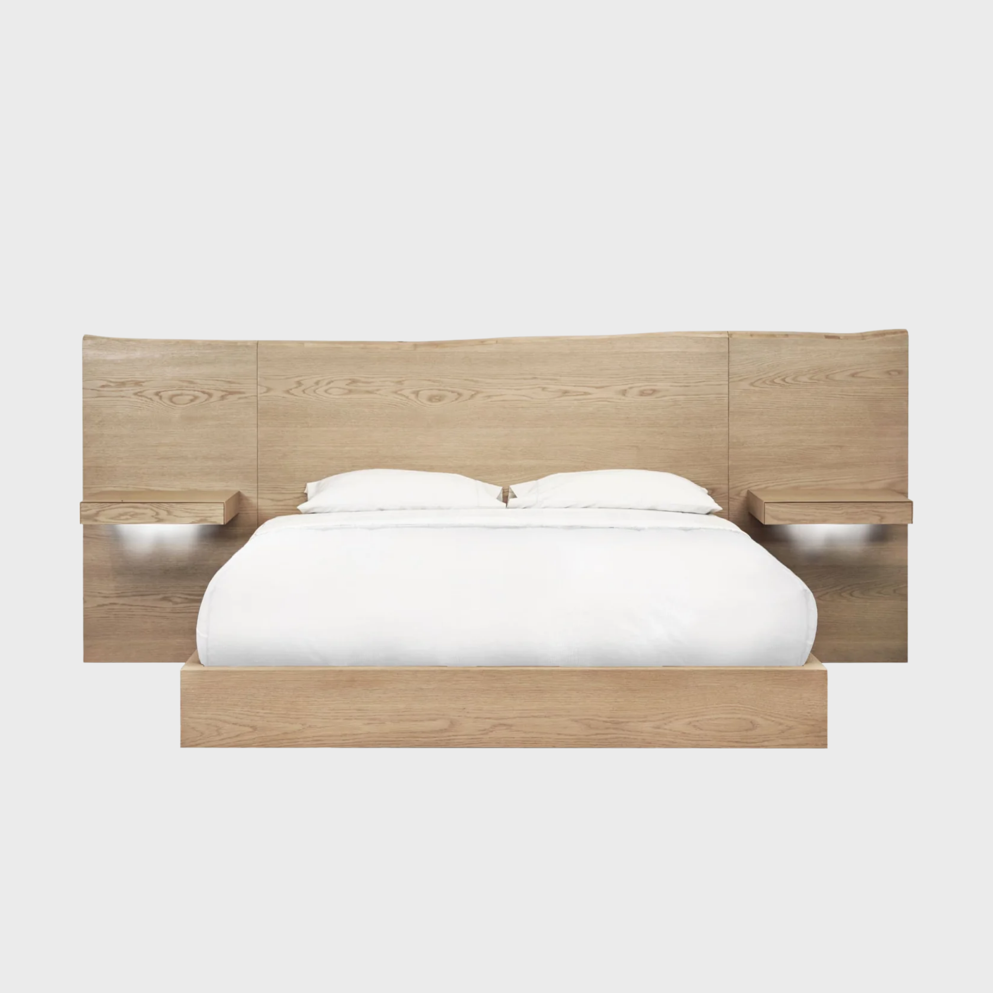 The One Coastal Modern Live Edge Wall Bed brings the organic beauty of nature into modern bedrooms. Made from light-toned white oak veneer with stone and teak root accents, it features a sleek platform design with integrated floating nightstands. Perfect for styling with soft neutrals or coastal blues and greens, this bed offers sturdy support without a box spring and adds a sophisticated, contemporary coastal vibe to any space.