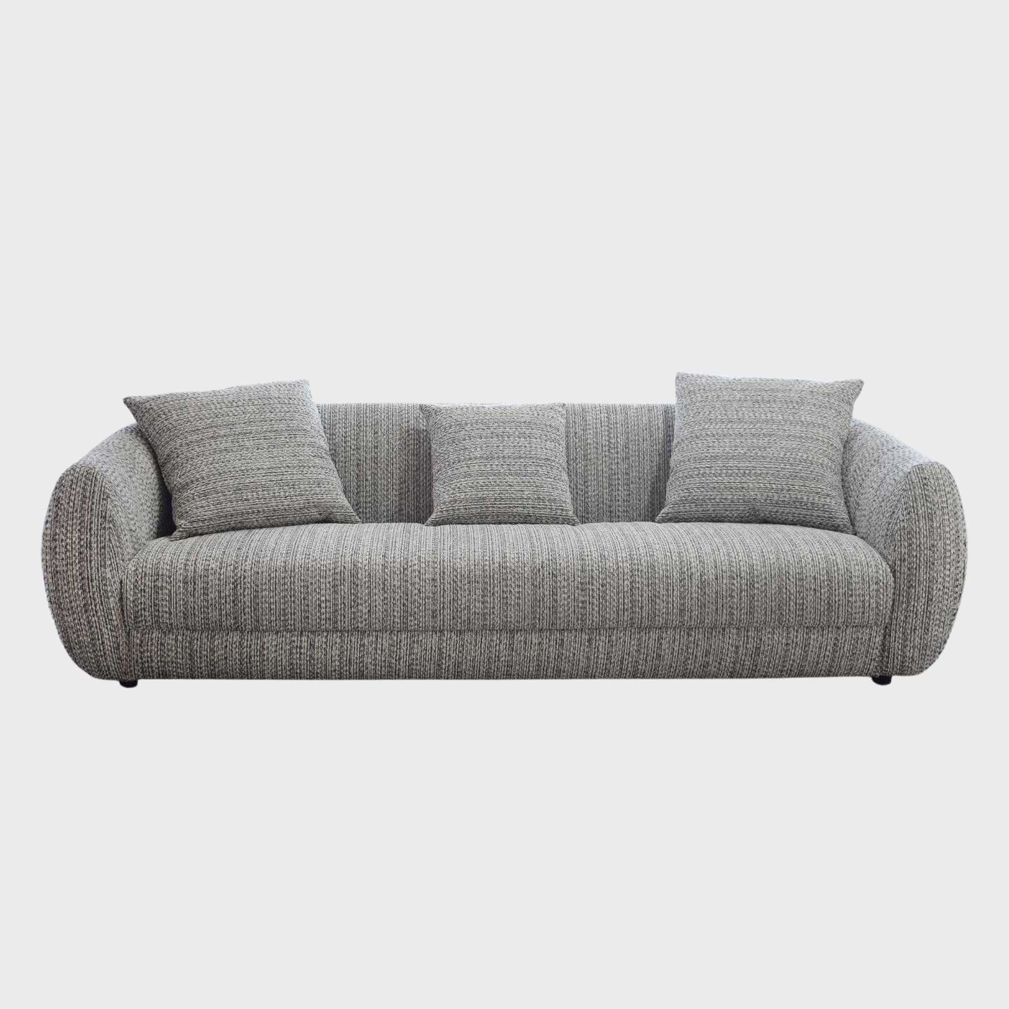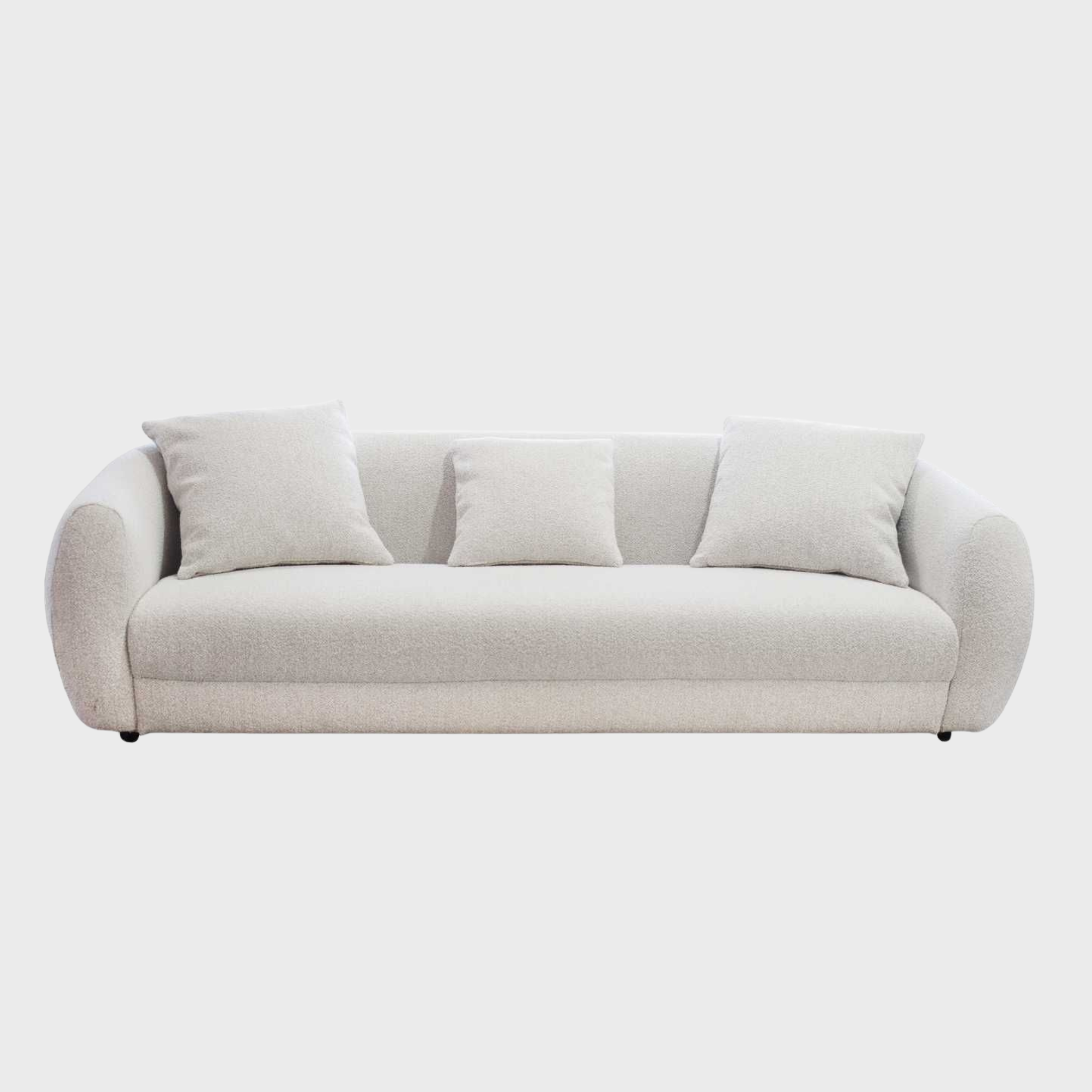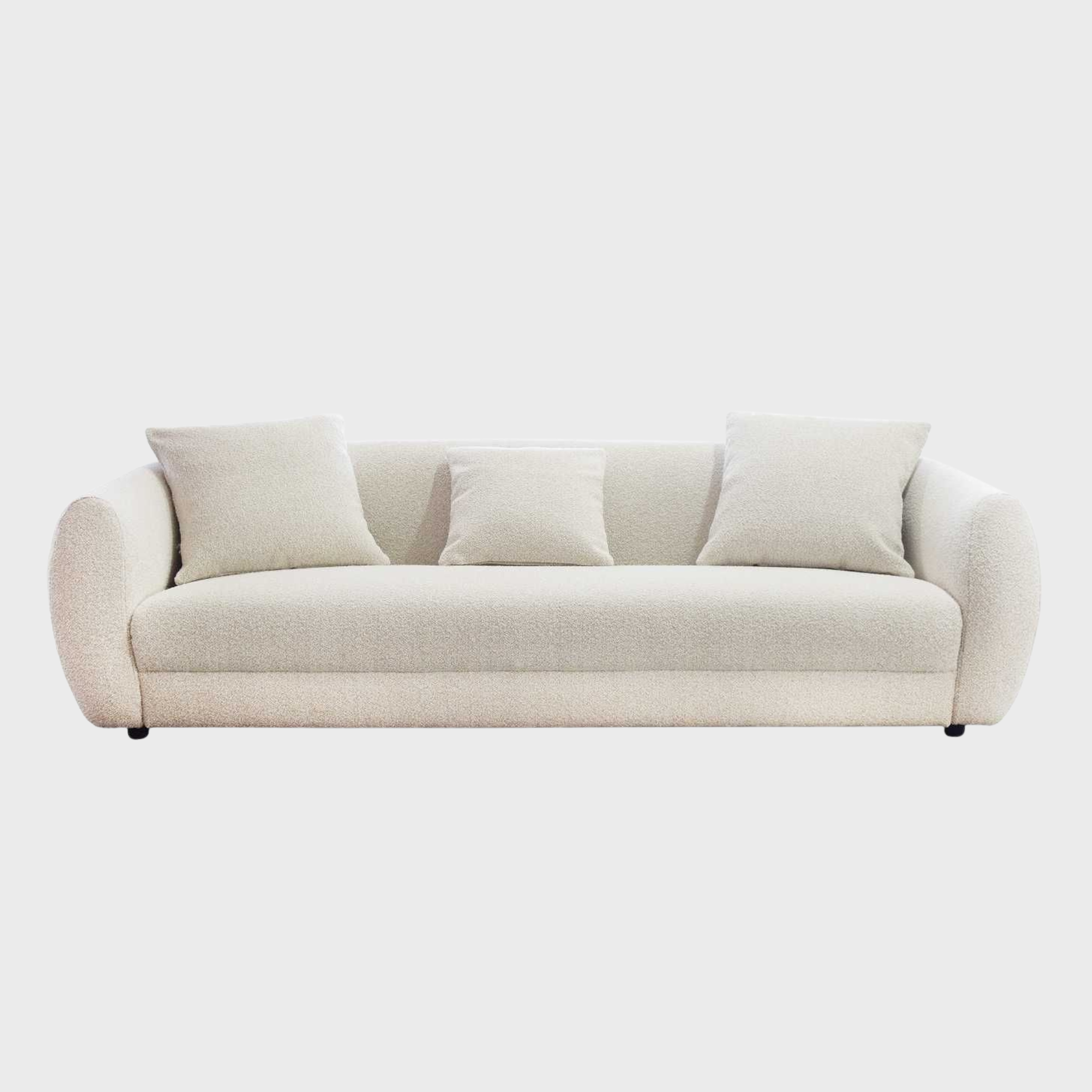 This contemporary collection features a range of silhouettes, from the broad, inviting profile of the four-seater to the compact elegance of the loveseat, making it ideal for diverse modern layouts. Each piece is upholstered in a premium, high-texture bouclé that balances a soft tactile feel with long-term durability against daily wear. Designed with deep-seated cushioning and supportive backrests, these sofas offer an uncompromising lounging experience while maintaining a clean, sophisticated aesthetic.